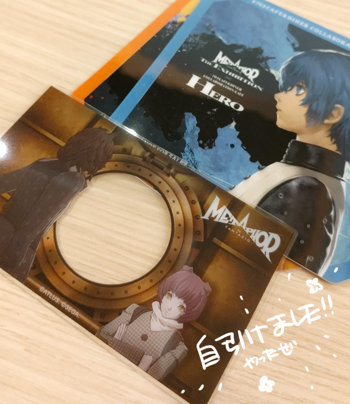 自引き出来てうれしい入場特典とカフェで「自カプの攻でしょ!あとジュナもあげる!」と譲ってもらえたコースター。めっちゃうれし!