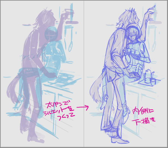 投げ縄ツールを迷いなく投げられないので筆圧のかかる太エンピツツールでシルエットを作る方法で試しました